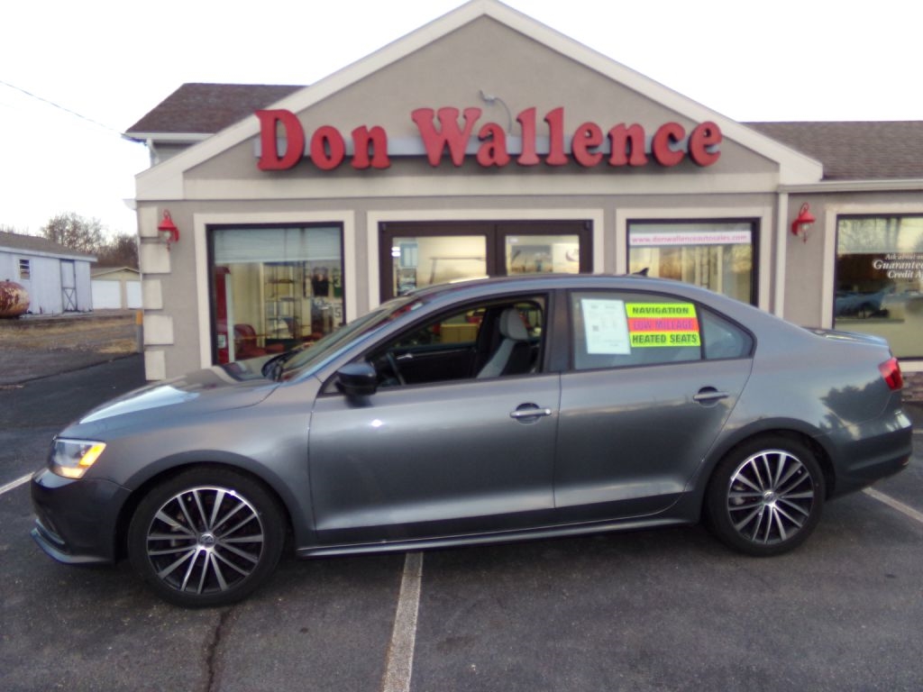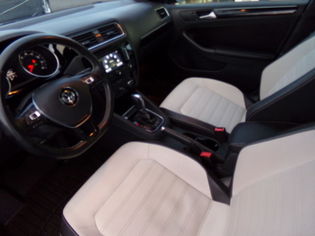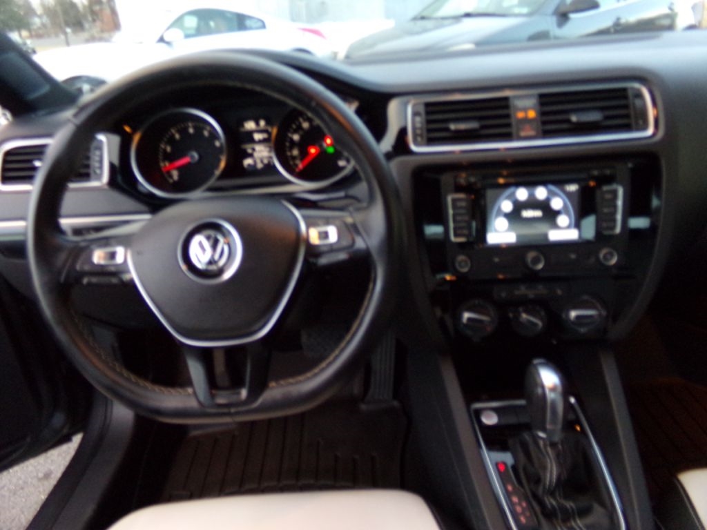 This Volkswagon Jetta is in the SE Package. One Owner with a clean Autocheck Car Fax vehicle history report. Serviced and a new State Inspection. Bluetooth cell phone connectivity. Heated two tone leather seats. Push button start. Smart device integration. Traction Control to help prevent slipping in wet and wintry weather conditions. Power windows, locks, mirrors and trunk release. Never smoked in as well. Factory Navigation. Never smoked in as well. Black and silver alloy wheels. Keyless entry with factory alarm. Center console. Drivers information center. Rear spoiler. Rear fold down seats. AUX media device hookup with steering wheel stereo controls. Cargo Mat. Georgeous interior! Runs and drives great...we just put on a 45 mile test drive. Hard to find interior color combination!!