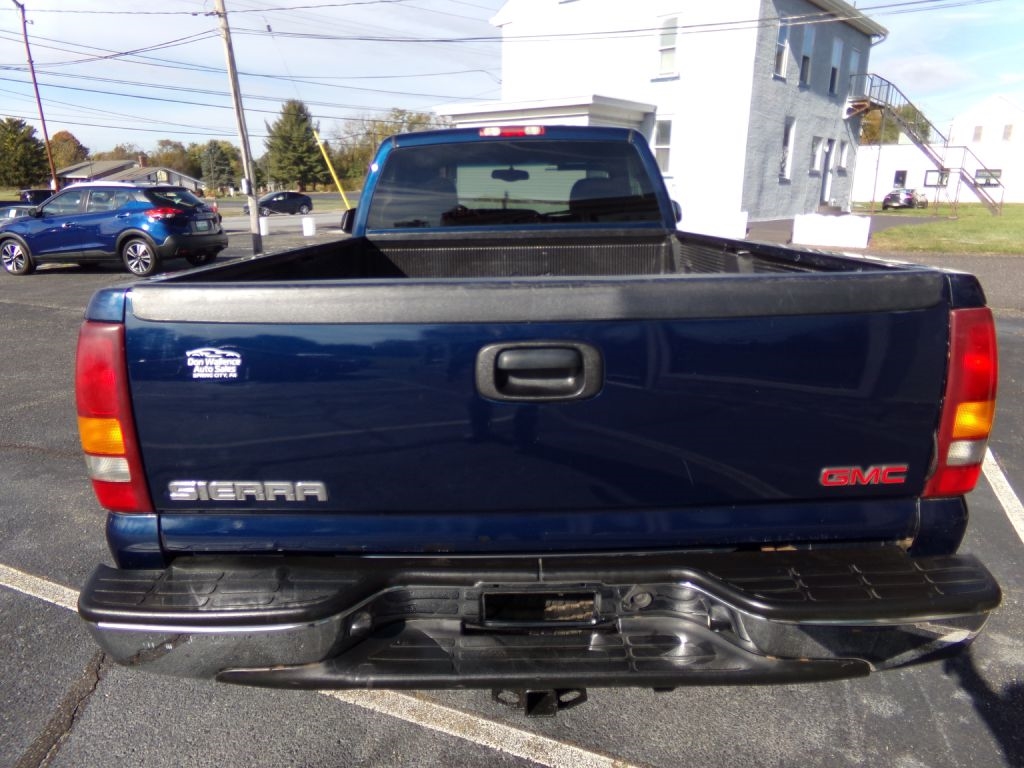 This GMC Sierra 1500 is in the Work Truck Package with the 8'' Bed. Serviced and a new State Inspection. One Owner. This is a rust free Truck! Runs and drives like new! Great Condition! Power windows, lock and mirrors. Newer tires on Alloy Wheels. Never smoked in as well. Tilt wheel. Cruise control. Delay wipers. Keyless entry with factory alarm. Center console. Drivers information center. Tow Package. Bed Liner. Chrome Bumpers. Spare Keys. Cargo lamp. V-8 Vortec Engine!